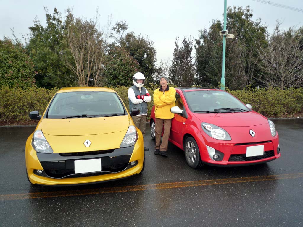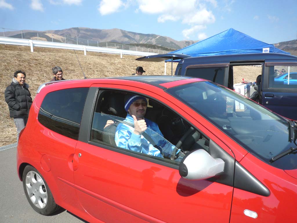 FFに乗っている人は少ないが、それでも運転大好きなYRS卒業生でYRSスクールレース参加者は、我先にとトゥインゴの運転席に。