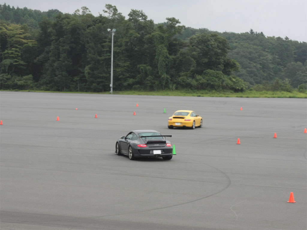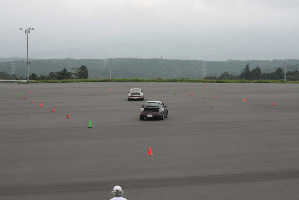 富士でも筑波でもサーキットを使ったドライビングスクールではスラロームの練習をする。