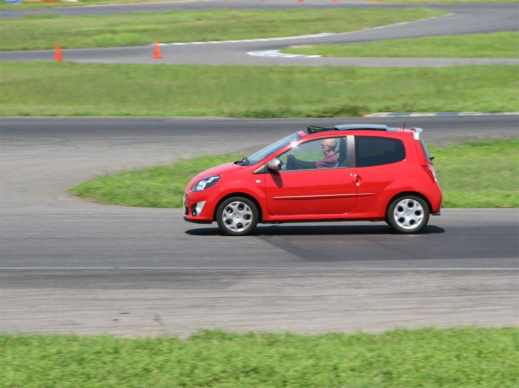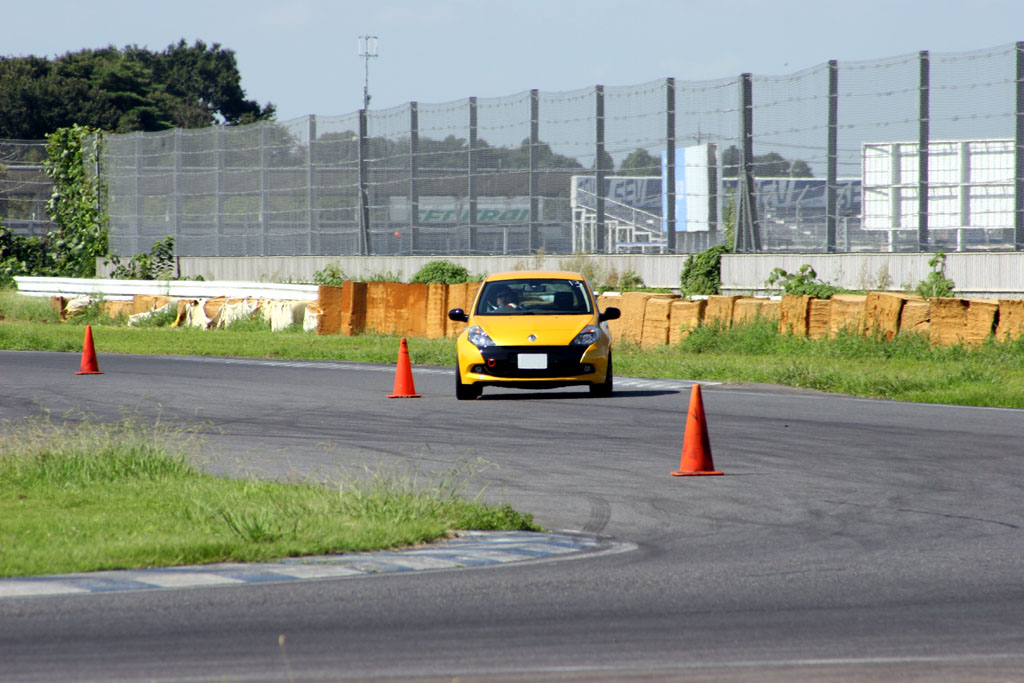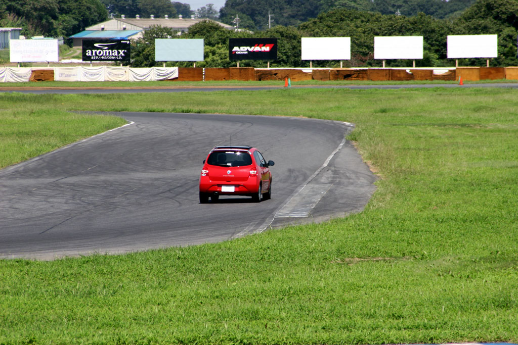 トゥインゴGTで筑波サーキットコース1000のインフィールドを走る。