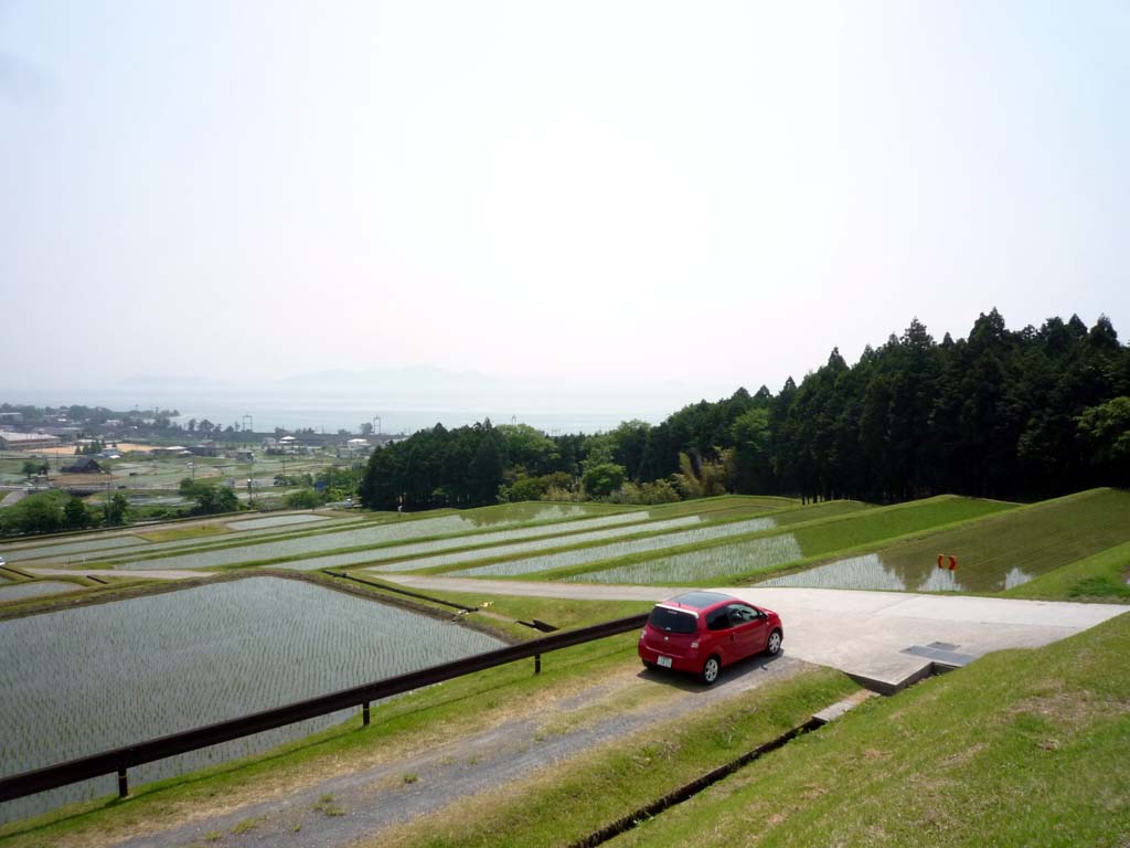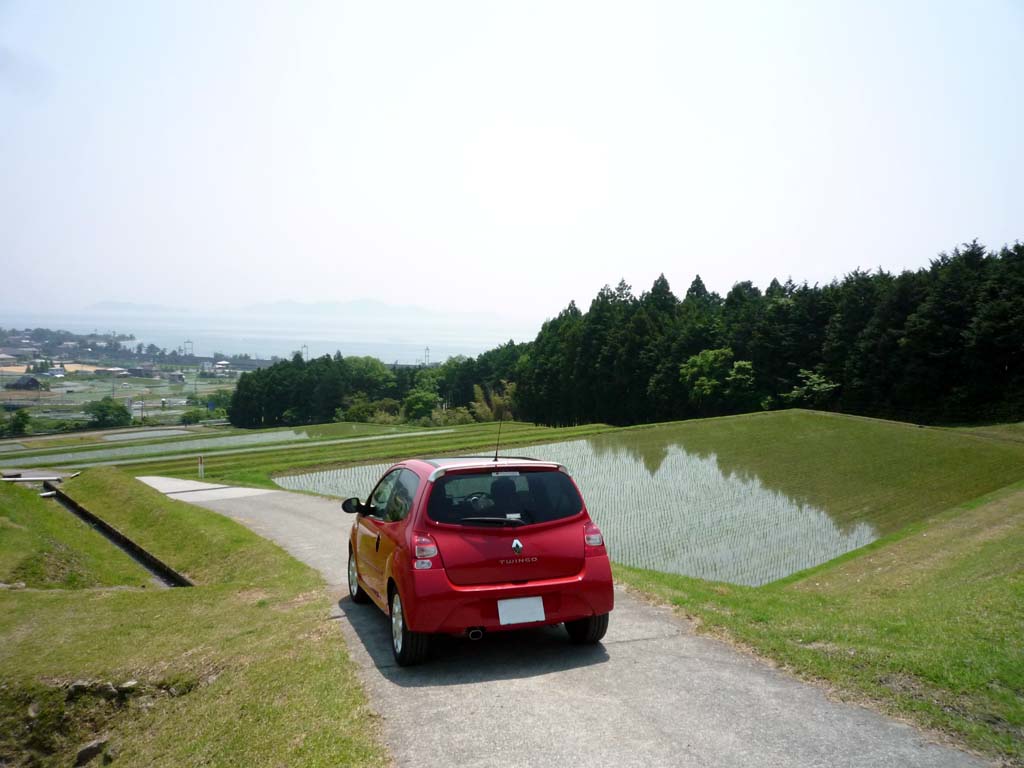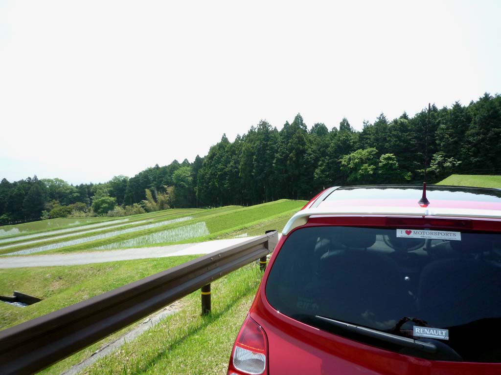 ※ 斜面にあるたんぼを上から見てみたくて所有者に許可をもらってトゥインゴGTで登ってみました。話を聞いて、平地の少ない湖西にはそれなりの営みがあることを知りました。