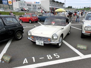 ※写真中央の津々見友彦さんはDKV900で、写真右の西園寺公作さんはルノー4CVでC3クラスに参加された。津々見さんはジャーナリストの先輩でもあり、ボクがアメリカに住むことになったきっかけを作ってくれたひとり。初めてお話させていただいた西園寺さんは、なんと第1回日本GPの前にも公道を使ったレースに参加されていた。驚き。