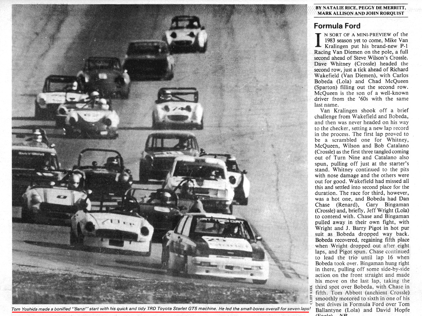 ランオフに招待されるには南太平洋デビジョンシリーズで上位にランクされる必要があったから、年間3レースまで参加が許されるよそのリージョンのナショナルレースにも参加した。今はネーミングライツで呼ばれているサンフランシスコリージョンのシアーズポイントやコークスクリューで有名なラグナセカ。アリゾナリージョンに属しNASCARストックカーレースが行なわれる1周1マイルのトライオーバルとインフィールドを組み合わせたフェニックスや、砂漠の真ん中で砂だらけのラスベガスにも行った。ランオフではロードアトランタも走ったから、いろいろなコースを体験した。