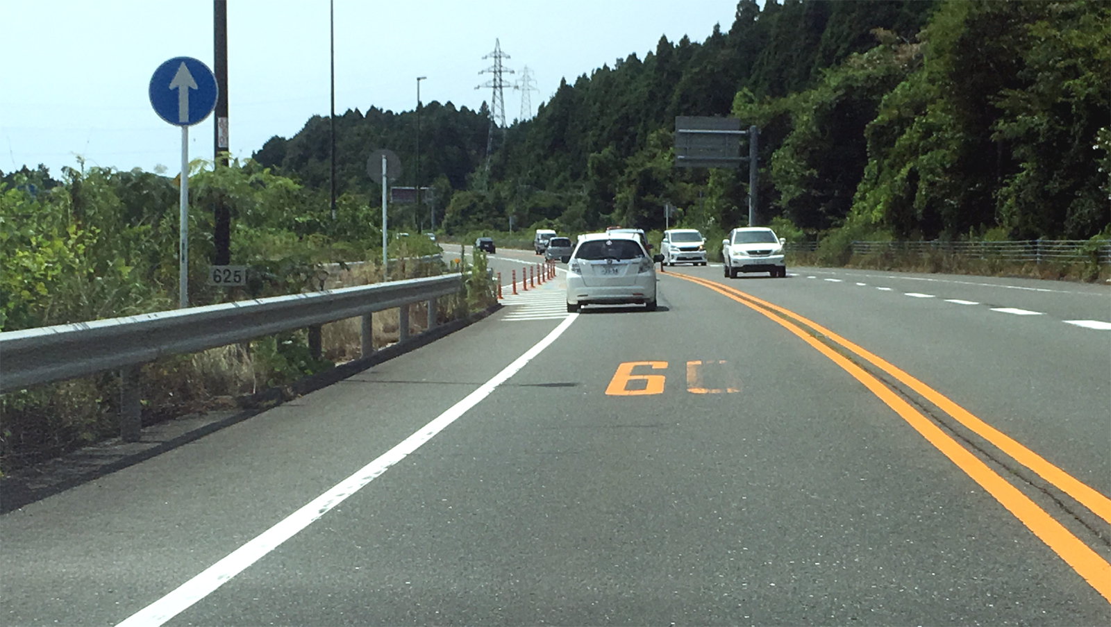 合流車線に入ってから速度制限の標識はないから、それ以前の40キロ制限が合流車線にも適用されるのだと解釈して。ならば、制限速度が60キロで、実際には70キロプラスから80キロで流れている本線に『安全かつ円滑に』合流するのには、40キロ制限が解除される地点が合流地点に近すぎない? そんな先まで延々と40キロで走らせる根拠は何? という話。