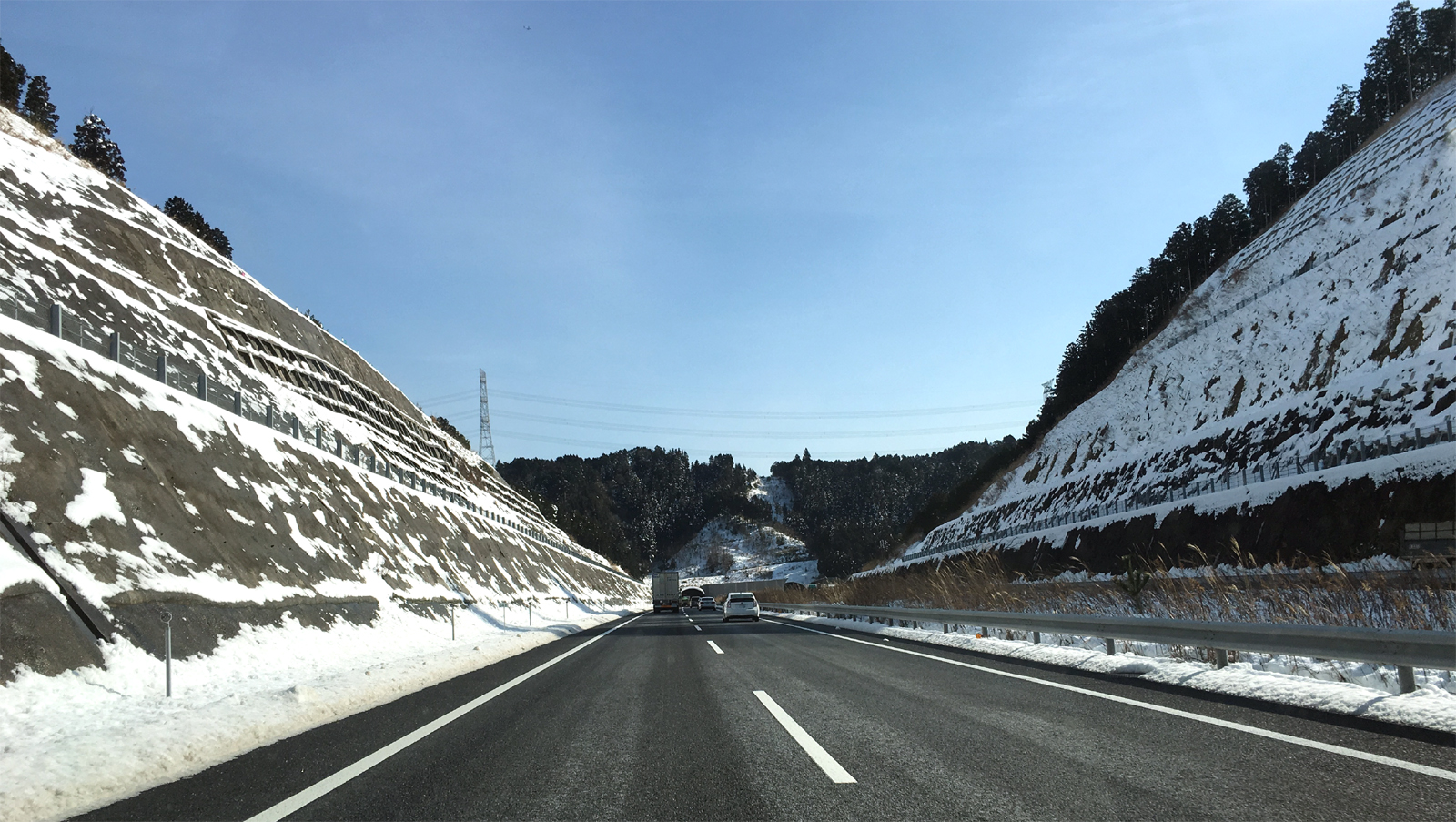 今年初めての新東名の岡崎付近は雪化粧だったけど