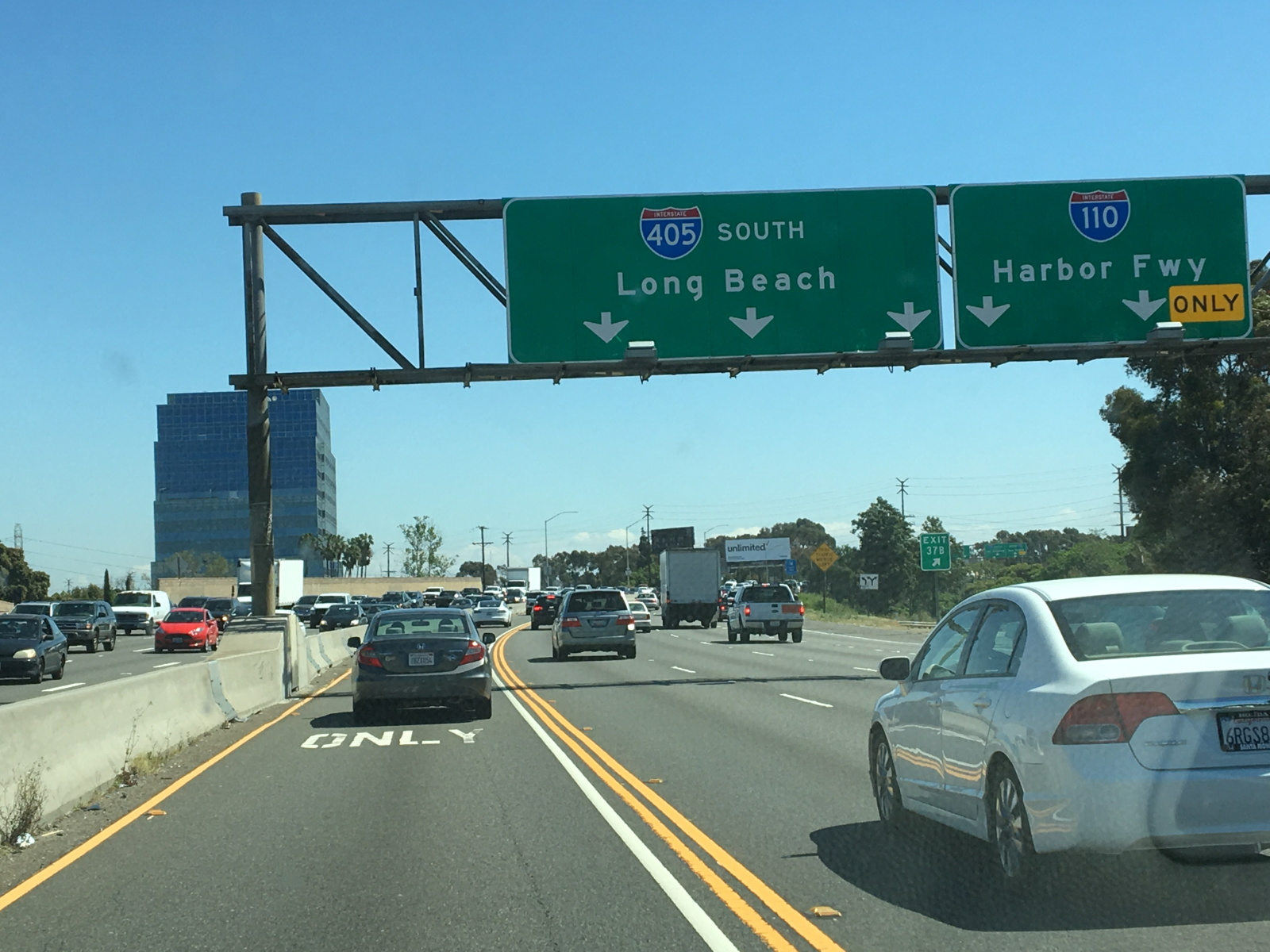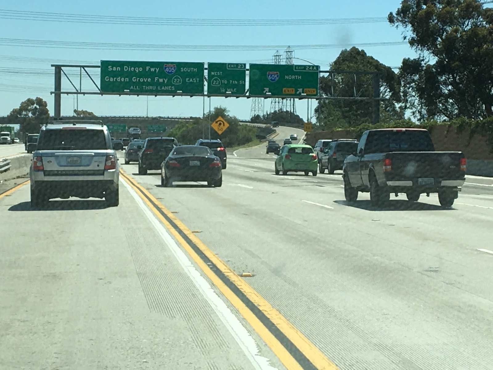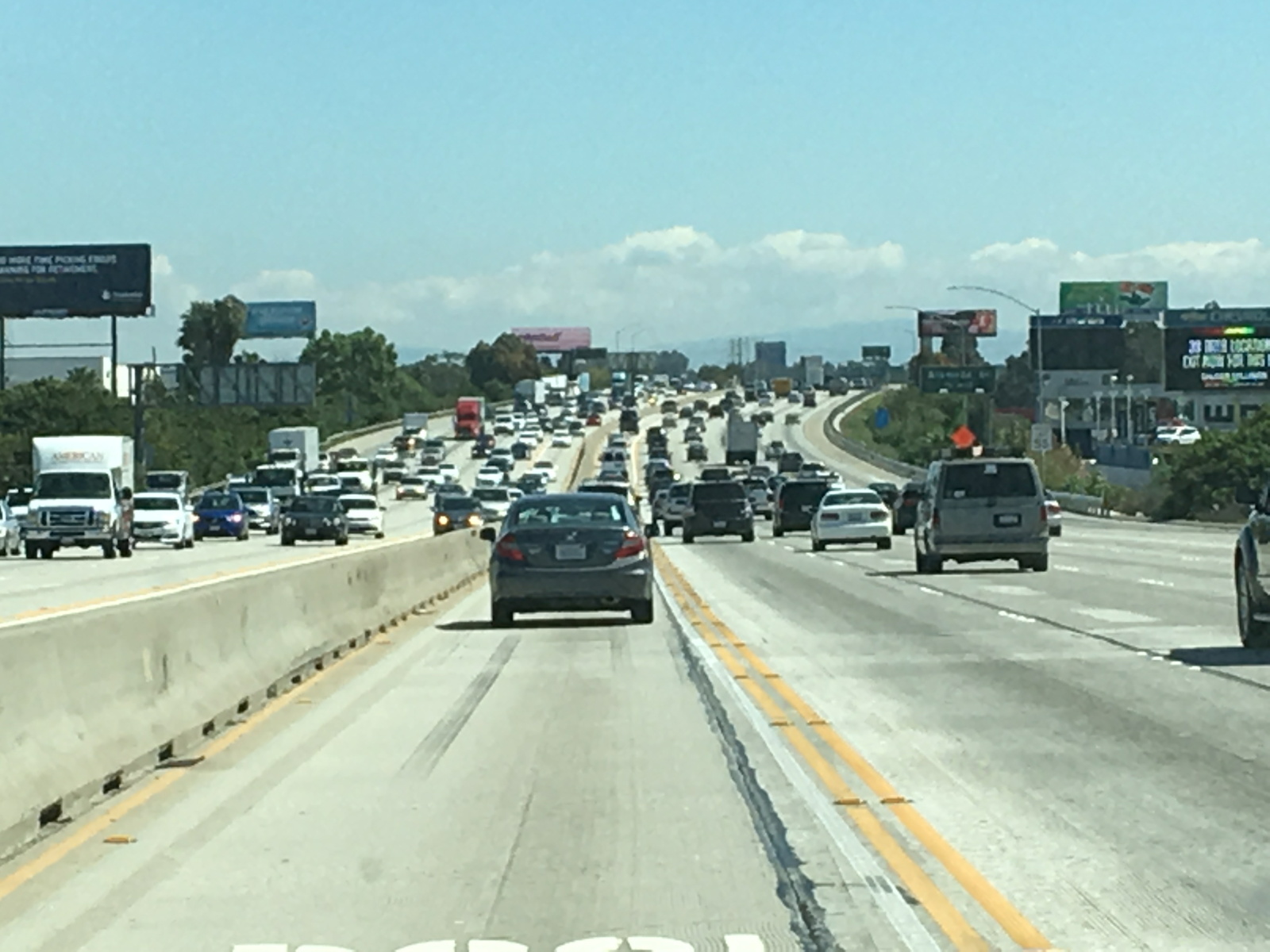 しばらく進みオレンジカウンティ方面に向かうため405Southに向かう。いくつかの合流を経て5車線プラスカープールズレーンの405に乗る。とたんに交通量が増える。頻繁な車線変更あり。