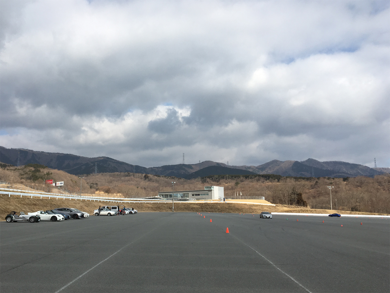 YRSオーバルスクールは半径22m直線60mの楕円形オーバルでイーブンスロットルとトレイルブレーキングの練習をしてから、より速度の出る半径22m直線130mのオーバルをできるだけ速く走って練習します。
