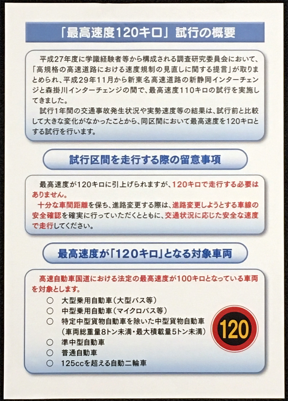「最高速度が120キロに引き上げられますが、120キロで走行する必要はありません」と書いてあるからと言って