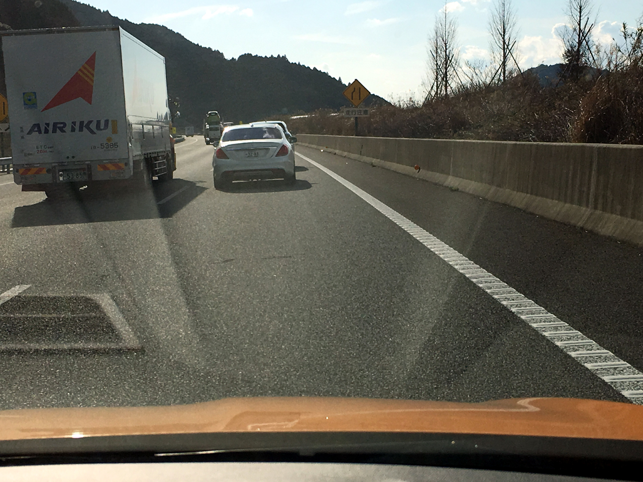 「 もっと気持ち良く走れる日は来るのかな、来ないだろうな~ぁ 」 と考えながら運転していると、第2車線を速くはない速度で走っていた軽自動車が急ブレーキ。大型トラックが軽自動車に幅寄せしたからだ。3車線から2車線に車線が減少する地点でのこと。