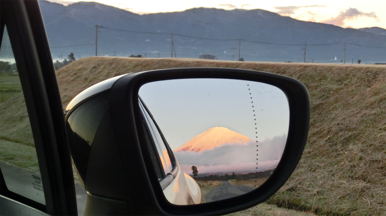 視界確保:2シーター・MRという構造上仕方ないのだが、ルームミラーはほぼ使えない感じ。これは所有車、スバル車の良くできている点。