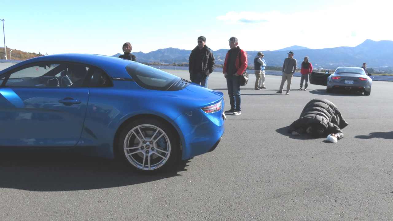 参加者全員が笑顔で試乗を終えました。アルピーヌA110ピュアとリネージを貸してくれたアルピーヌ・ジャポンに改めて感謝いたします。