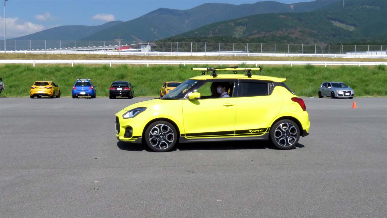 当日、Mさんはご子息を助手席に鮮やかな黄色の、初心者マークを貼ったスイフトスポーツに乗って、いつも通りの笑顔でやってきた。運転してきたのはMさん自身がスイフトスポーツに乗りたかったのか、それともまだMジュニアの運転を信用していないからなのかは聞きそびれたけれど(笑)。いい景色。座学では間隔を空けてひとつの机に座って、Mジュニアは真剣にメモをとり、時々ジュニアに話しかけるMさん。ウンウン。