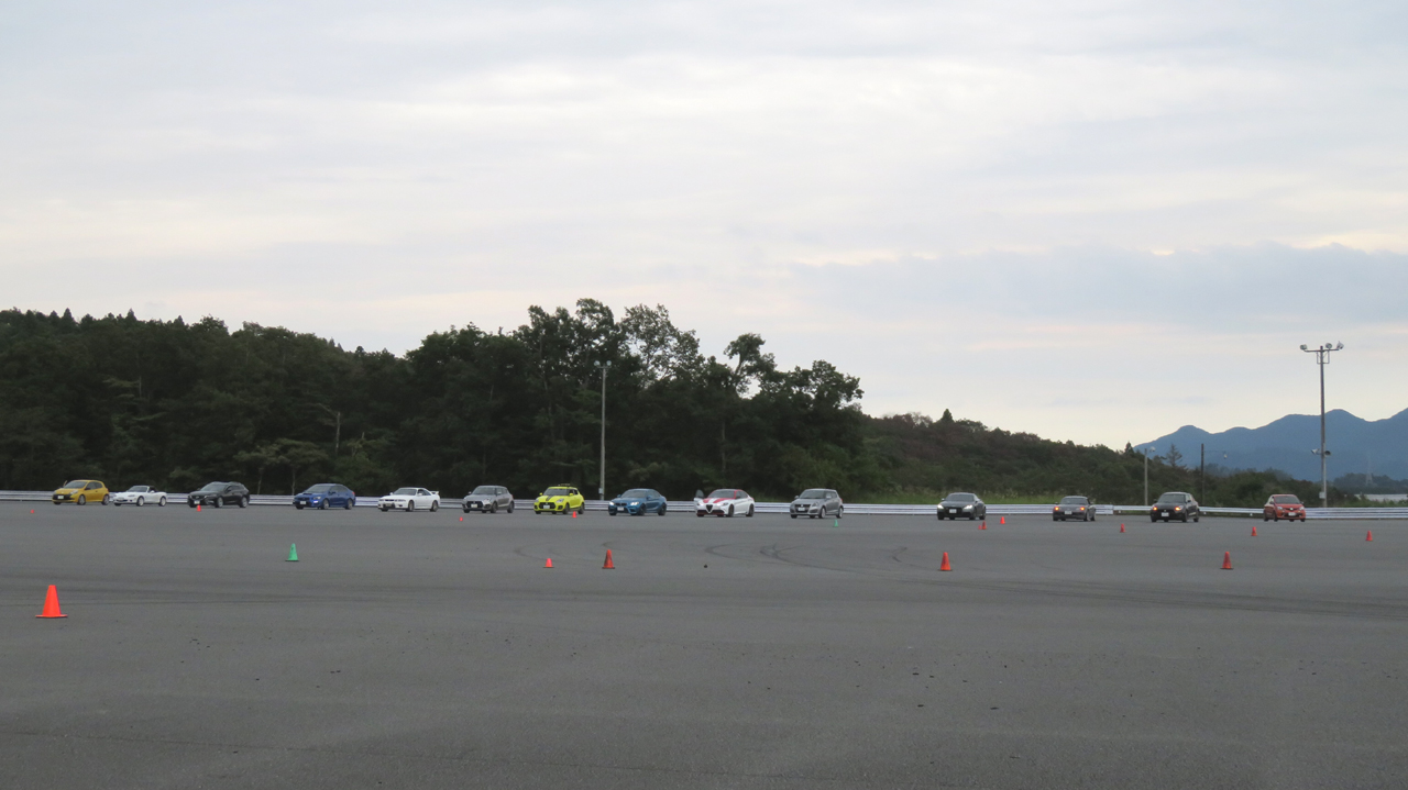 半径22m直線130mのオーバルコースを周回しながらブレーキタッチを練習します