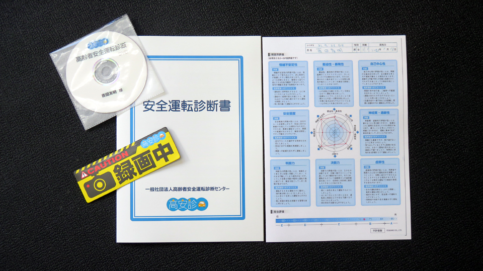 2週間もしないうちに診断書1通、診断映像1枚、運転適性検査結果1部が届いた(なぜか CAUTION録画中 のマグネットが入っていた)。