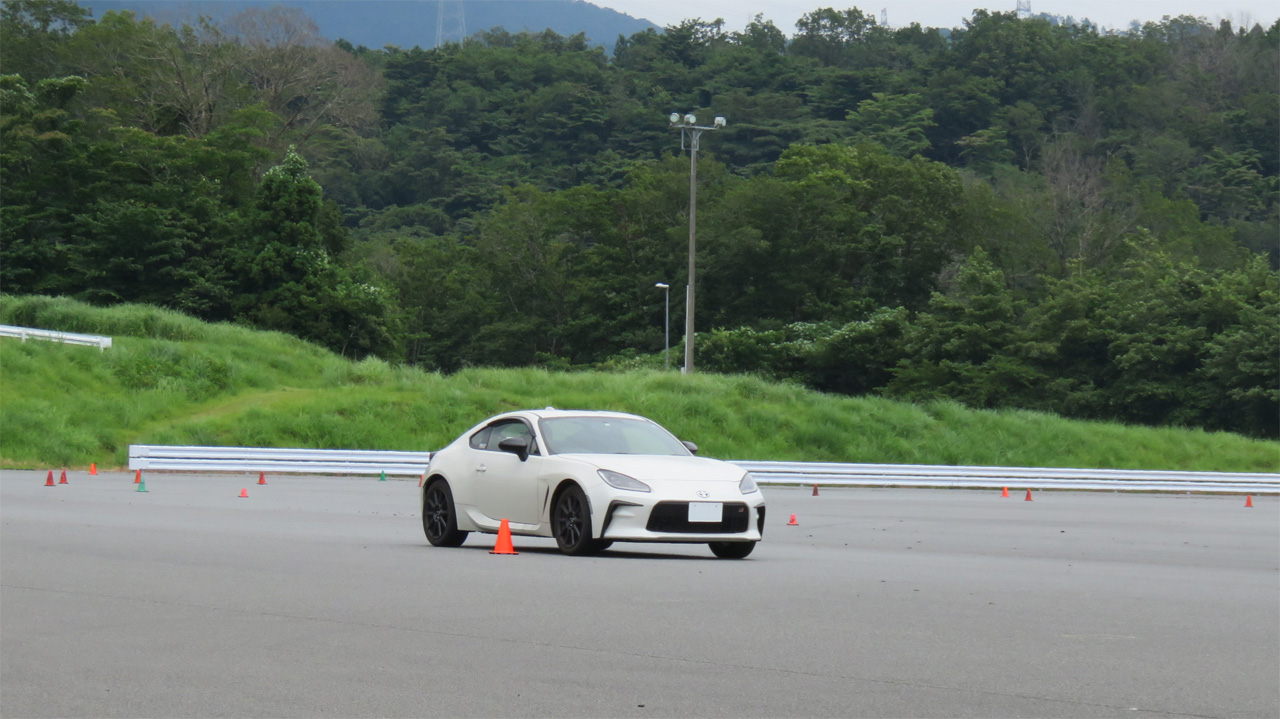 直進性の良さ。剛性感がありコントロールしやすいブレーキと、ブレーキング姿勢の素晴らしさ。微小舵角から立ち上がる手応えと応答。GR86だと情けなくリアが流れ出してしまう領域でも、しっかりと路面をつかまえるスタビリティの高さ。