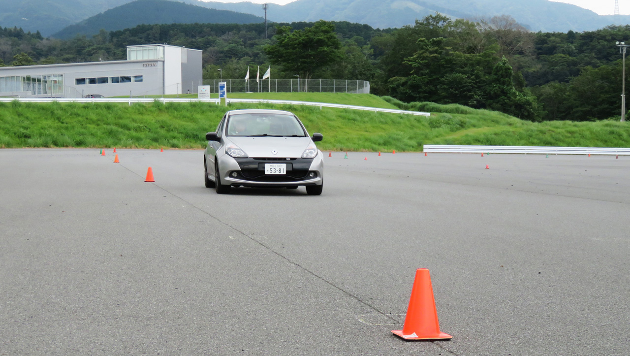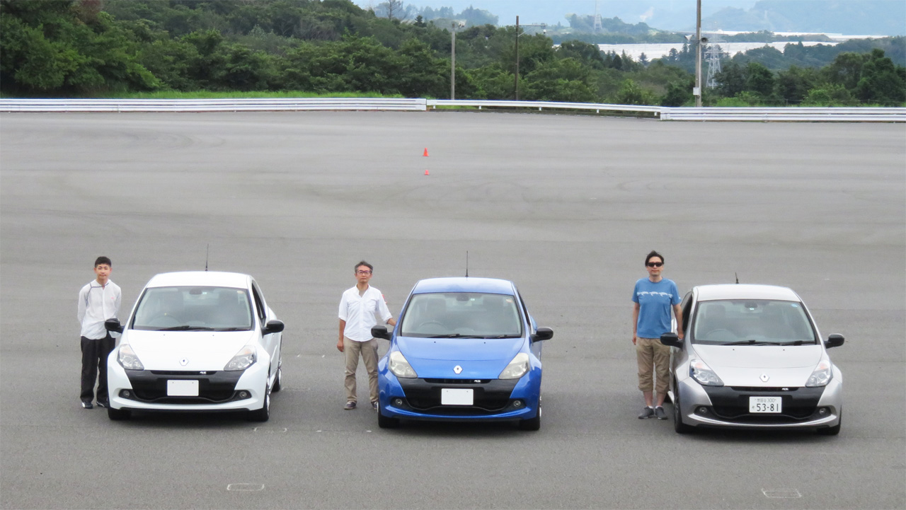 カリキュラムをこなしながらあれこれ話しているとリアの落ち着きがルーテシアⅢRSのほうが良かったという話になって。FRなのに、と聞くとムニャムニャと。走りを標榜しているFRでもそう感じるらしい。その上で、もう少しFRに乗ったらルーテシアⅢRSに戻るのが正解かなと思っていると。それを聞いていたスタッフのYが、『FRに乗ったことで、ルーテシアⅢRSの記憶が「良かったなぁ」という成功体験として美化され過ぎているかもしれません。直後に乗り比べることで検証してみてはどうですか。その感想文をお願いします』と水を向け、Y自身のルーテシアⅢRSの提供を申し出。ということで、Yさんは贅沢にもFRとFFの乗り比べ。もちろん通常のカリキュラムに影響のない範囲で。