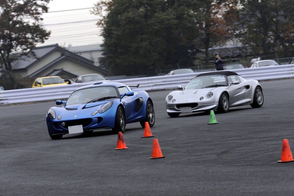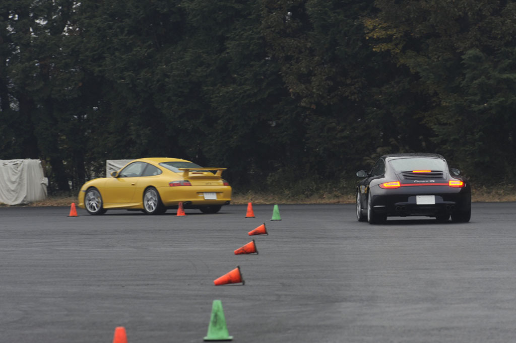 YRSオーバルをイーブンスロットルで走る場合、直線もコーナーも同じ速度で走りながら徐々にペースを上げていくように指示する。半径22mのコーナーならどんなクルマでも60キロ/時ぐらいまでならアンダーステアを出さずにインベタで周ることができる(正確に言うとクルマはアンダーステアでコーナリングしているのだけどパイロンから離れずに、という意味)。しかしそれ以上の速度になると前輪のグリップが運動エネルギーに負けてフロントが外に逃げ出す。