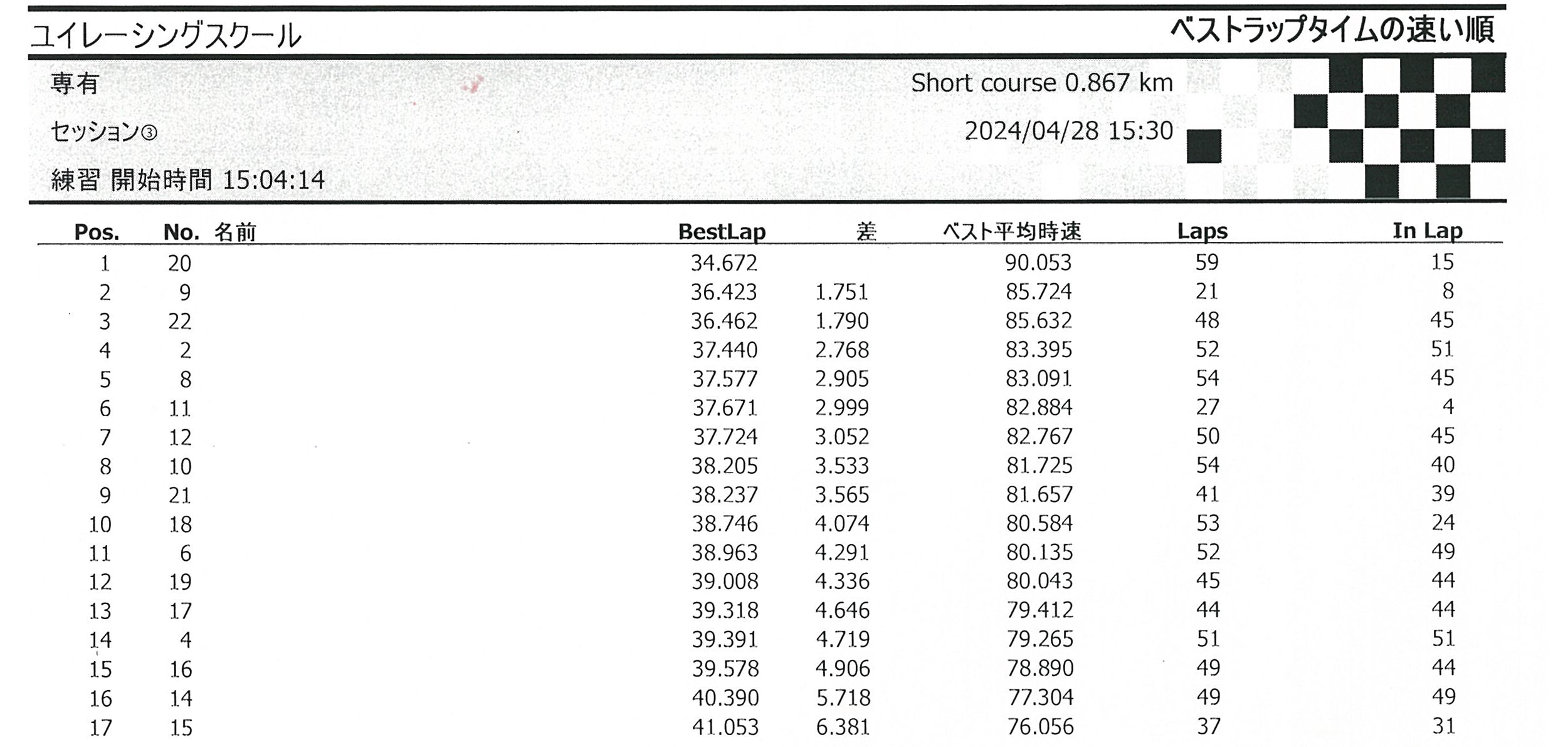 今年で22年目。2024年2回目。第78回目のエンジンドライビングレッスン。今回は4名の方がエンジンドライビングレッスン初参加。ユイレーシングスクール流ティーチングは、もちろん効果がありましたとも。
