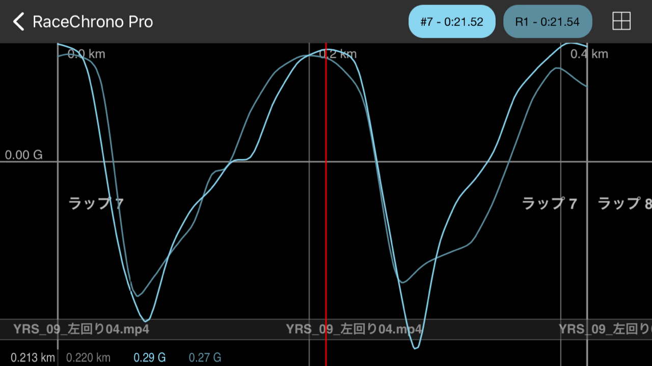 加減速G:明るい色の線が私。最初のブレーキングが強すぎる