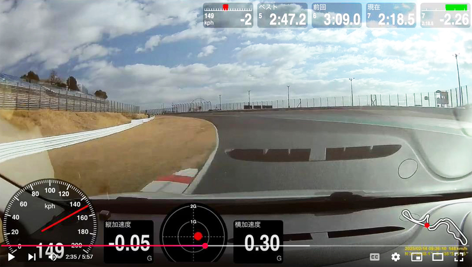 ・2分44秒台で走れるようになったが、ここから2秒短縮するには各コーナーでコンマ何秒かずつ縮める必要がある