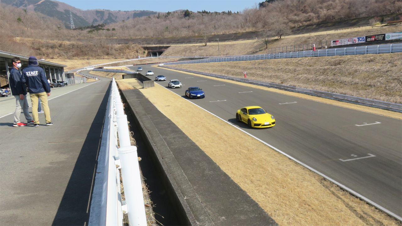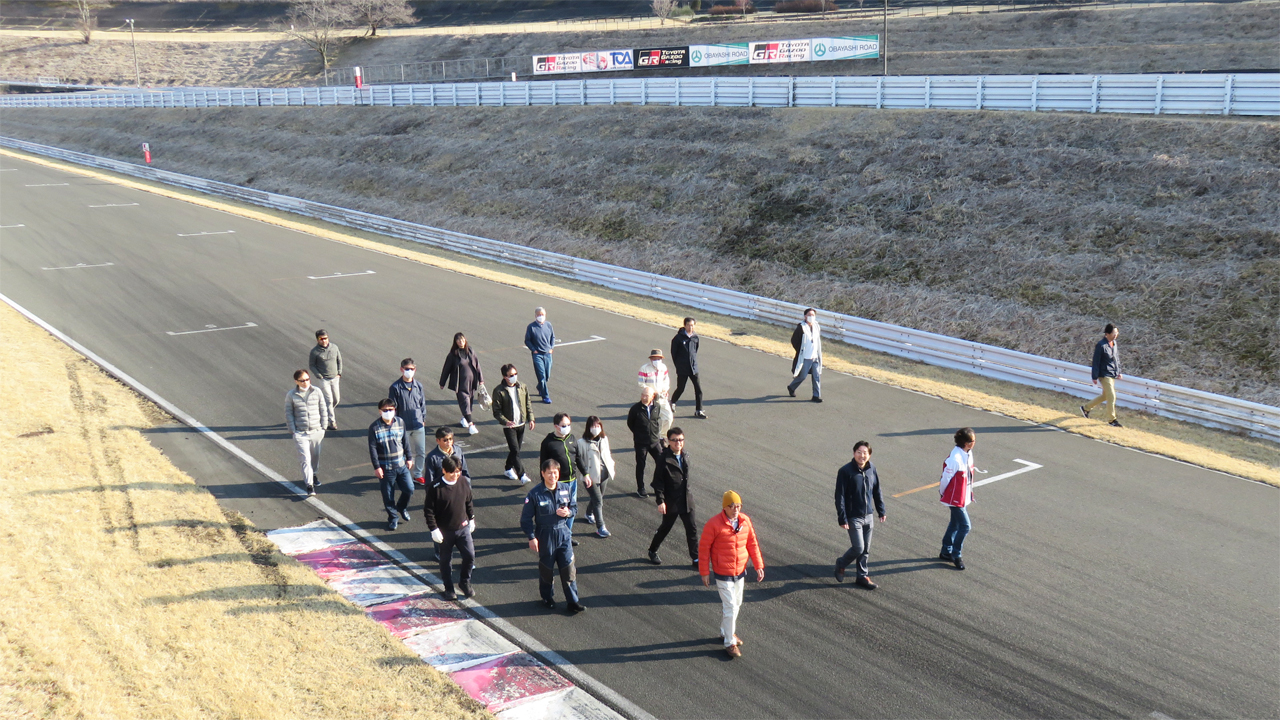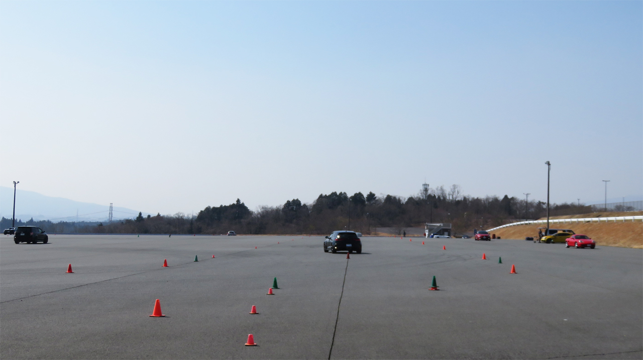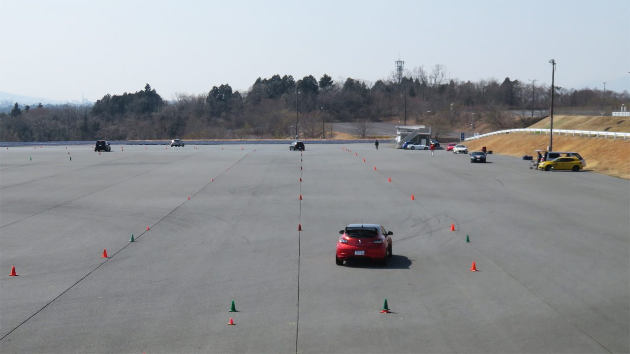 飛行機が展示してある立川飛行場のエプロンは、たくさんの人でごった返しざわめきこそ他所ではありえないほど大きなものだったものの、発動機の音は皆無だったから低音の排気音は間違いなく居住区からのものだった。歩いて行くとかなり大きな空間が広がっていた。そこには周囲を芝生で囲まれたアスファルトのコースがあった。見た感じでは運動場のような楕円形をしたコースのようだった。