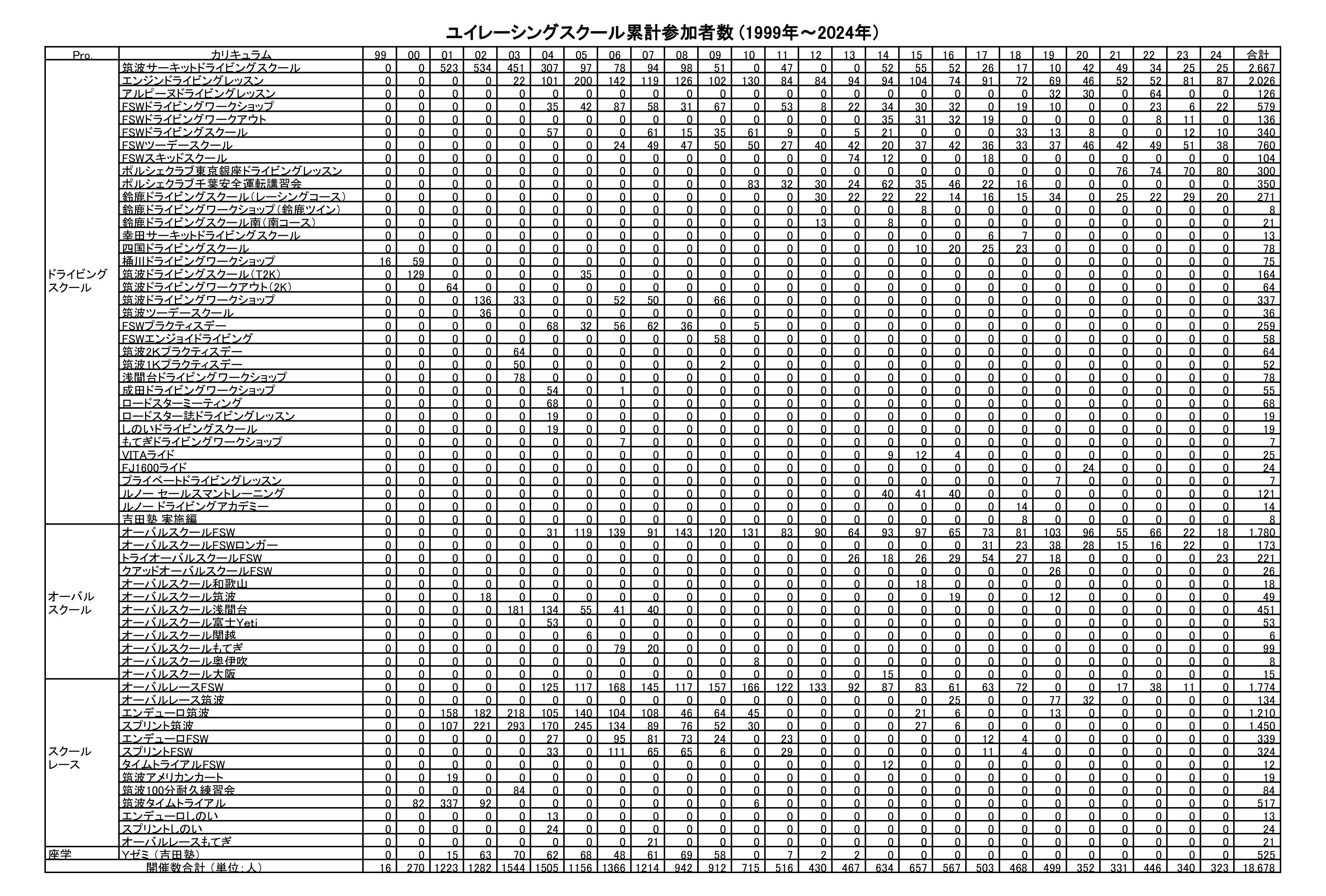 遅くなってしまったけれど、日本でドライビングスクールを初めてから25年が経ったので開催数と受講者数を集計してみた。