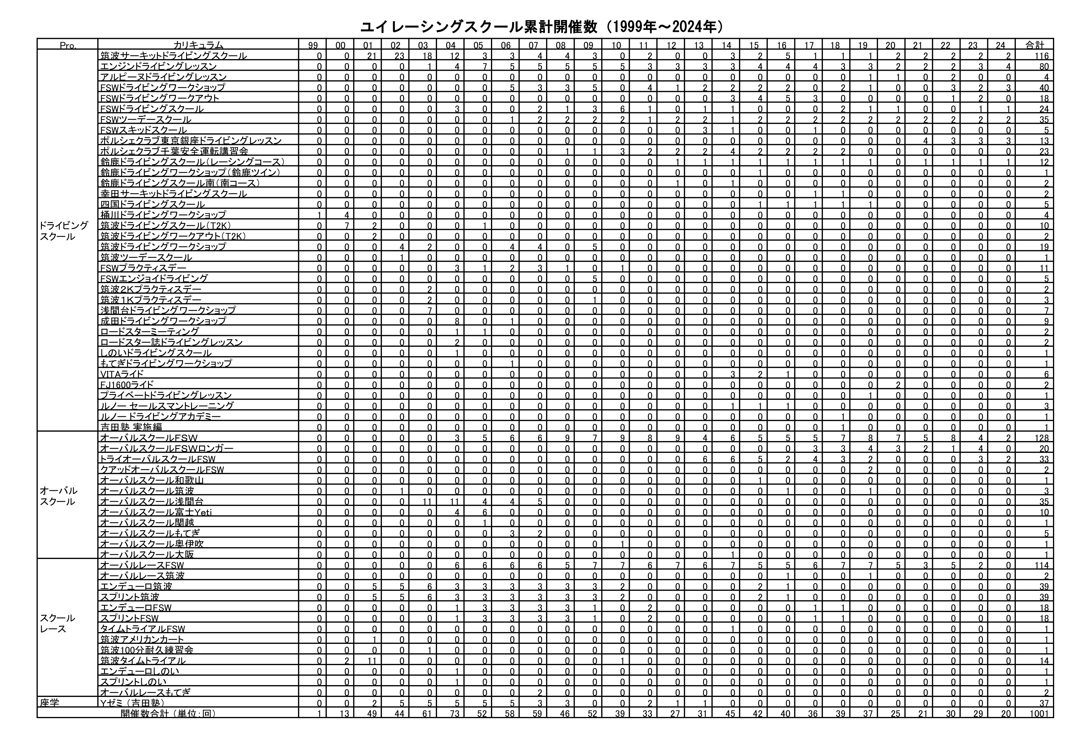 この間、エンジンドライビングレッスンやポルシェクラブ千葉の安全運転講習会やポルシェクラブ東京銀座ドライビングレッスンを含めて延べ1,001回のスクールを開催した。FSWレーシングコースや鈴鹿サーキットレーシングコースはもちろん、北はしのいサーキットから南は阿讃サーキットまで大小とりまぜて16ヶ所のサーキットでドライビングスクールとスクールレースを開催した。浅間台スポーツランドから始まって、関越、yetiスキー場、奥伊吹スキー場、大阪舞洲、FSWP2など広大な駐車場6ヶ所でYRSオーバルスクールを開催した。