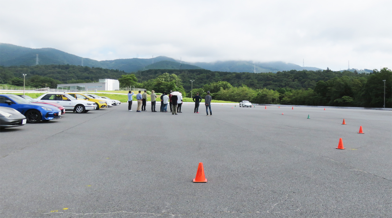 午前中にスラロームと大小のブレーキング練習、午後はコーンで作ったオーバルコースでコーナリングの練習をします。クルマの機能は加速、減速、旋回。人間が行う操作がスロットル、ブレーキ、ステアリング。それぞれの関係を確認しながら、クルマを思い通りに動かす練習をします。