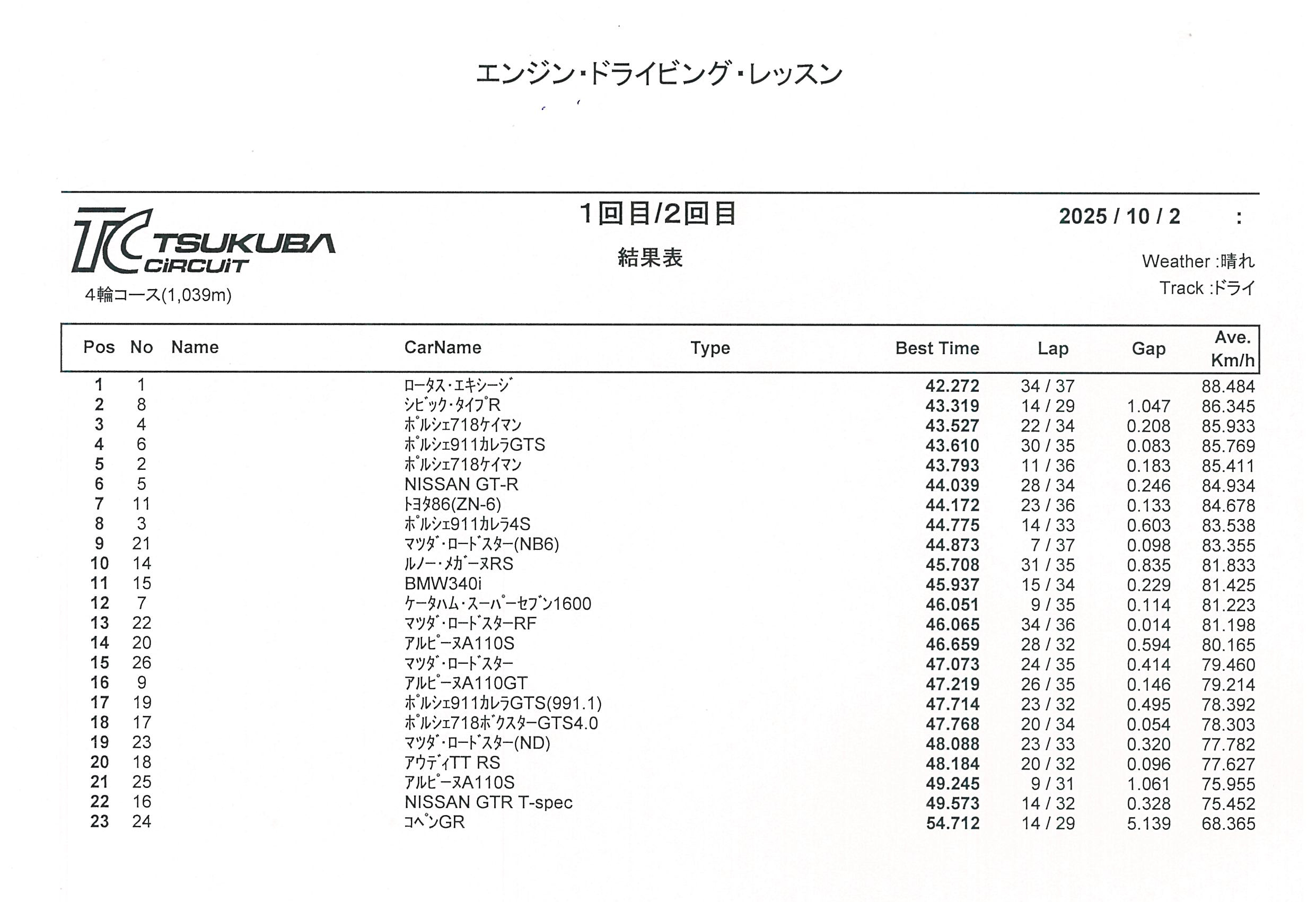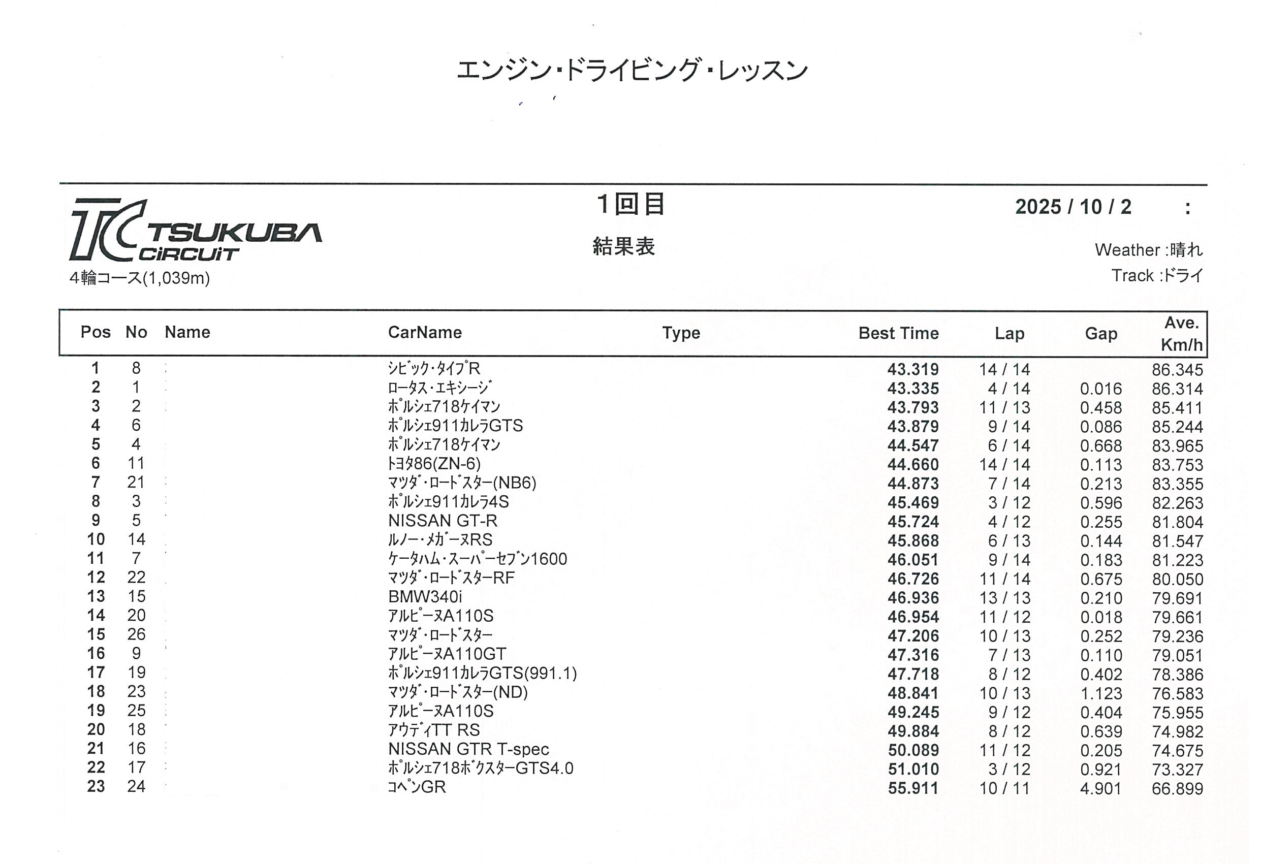 というわけで午後を2回のステージに分けて走行。各ステージの最後の最後のラップでベストを刻むことができれば、それはすなわち操作が身体にしみ込んでいることの証ですよ、とアドバイス。