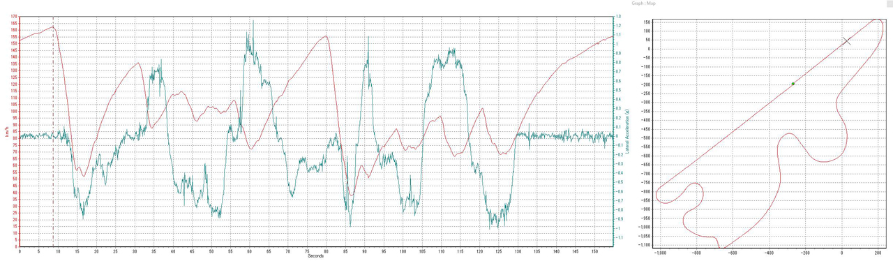 ユイレーシングスクールはサーキットを走行するカリキュラムでは周を重ねるごとにラップタイムを短縮するような走り方の構築を勧めています。いきあたりばったりの運転やall or nothingの走り方では操作が身体に馴染まないからです。計測周の最後にベストラップが出るのが理想と伝えます。もちろんそのために途中のアドバイスも欠かしません。