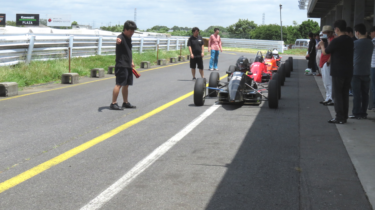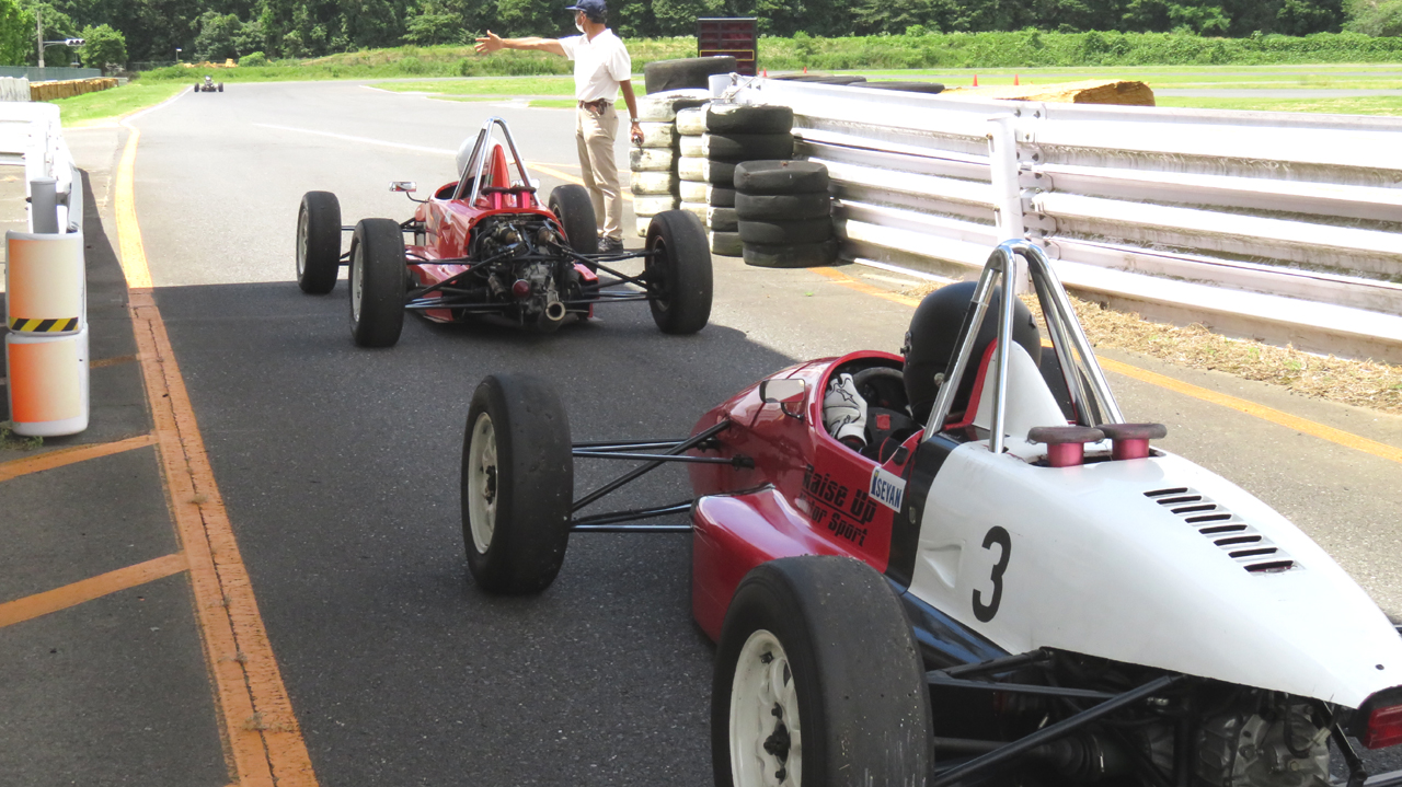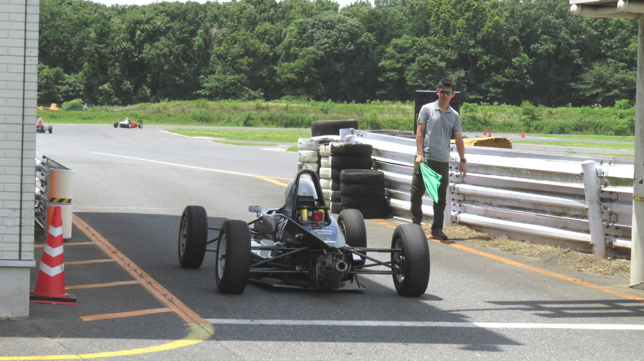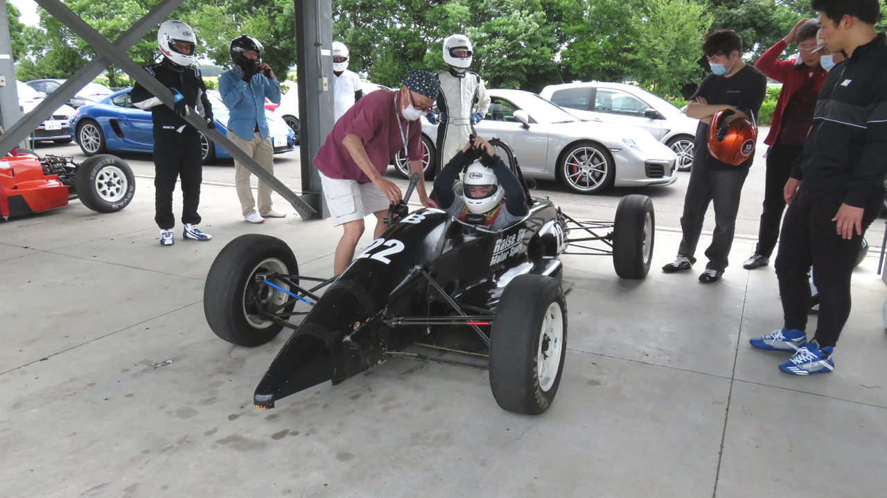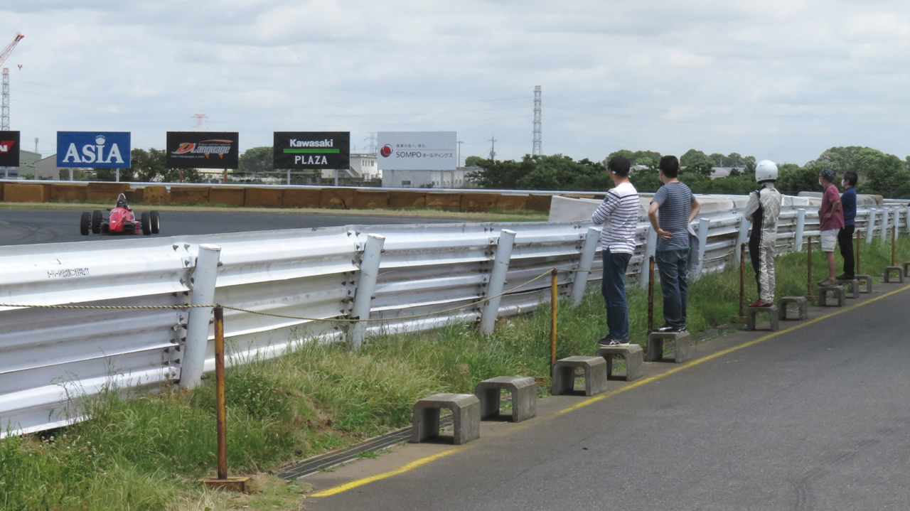 でも、ある程度の速さで走って遊びのないクルマの醍醐味を味わってほしいとも思う。ホント。自分が機械を操るということはこういうことなのだ、と実感できる。スピードを上げないとレーシングカーは乗りにくくもある。けれど、時間が経つと無節操に速さを求めるのが人間の性。ユイレーシングスクールの卒業生であってもだ。悩ましい。ま、全員の走行が終わるまで胃痛に耐える覚悟ができたらまた開催することにしよう。