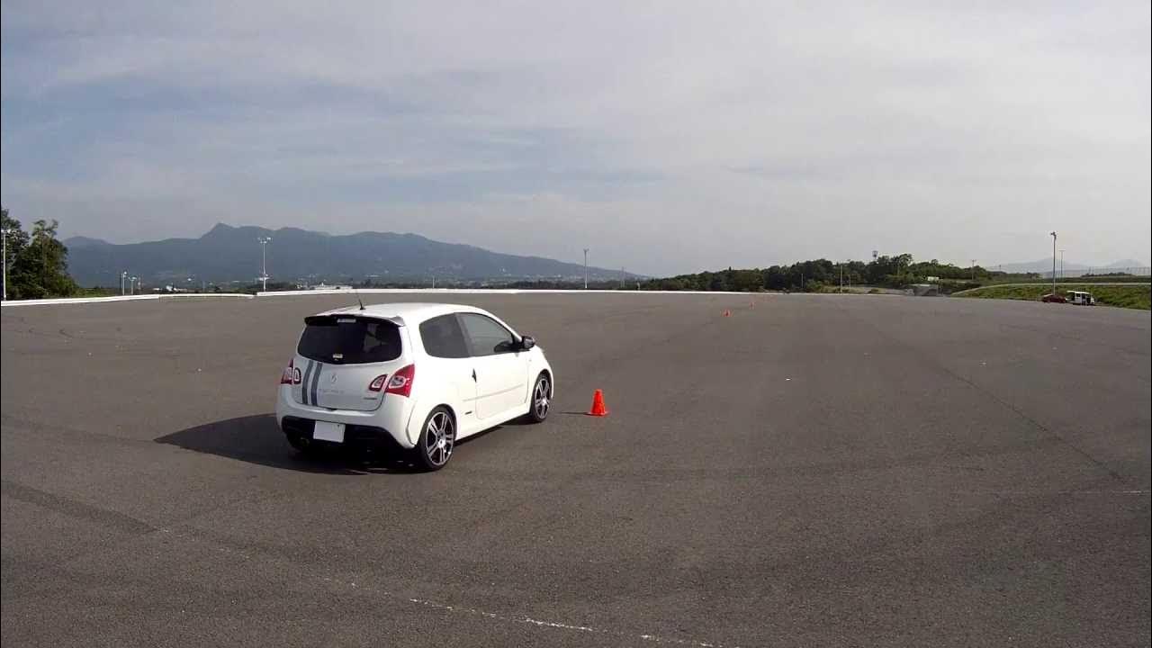 トゥインゴ ゴルディーニ RS スラロームを駆け抜ける 20m間隔のスラロームをできるだけ速く駆け抜けます。前半は悪い例でロードホールディングが低下し失速しています。後半はコーンの間でクルマをフラットにして加速区間を設...